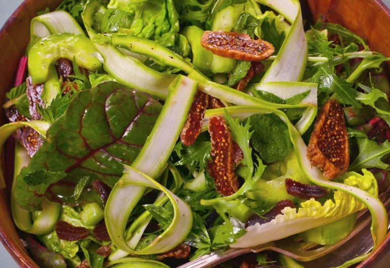 Ingredienti 6 grossi asparagi freschi 8 fichi secchi 200 g di insalata verde mista pulita mezzo cetriolo a rondelle il succo spremuto di 1 limone 1 cucchiaino di miele olio di oliva q.b. sale q.b. Preparazione Insalatina di fichi e asparagi Continua alla pagina successiva